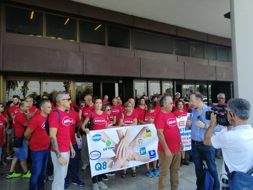 Si è svolta oggi la prima manifestazione dei Gestori ANGAC che hanno proclamato in Sardegna tre giorni di sciopero per le date dei giorni 21, 22 e 23 agosto. Sotto i portici di via Roma a Cagliari ha sfilato un nutrito gruppo di gestori di tutti i marchi petroliferi, indossando tutti una maglietta rossa riportante la scritta ANGAC e SCHIAVI DEL CAPORALATO PETROLIFERO, con partenza dalla Rinascente sino ad arrivare sotto il palazzo del Consiglio Regionale davanti al quale è stato effettuato un sit-in durato circa un’ora.