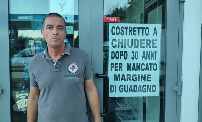 “Quanto costa oggi la benzina!”. Pensate alle volte che negli ultimi mesi, da quasi un anno a questa parte, avete detto o sentito pronunciare questa frase, colorandola magari con qualche espressione accesa e immaginando il benzinaio come un ladro pronto a infilarsi nelle proprie tasche un bel malloppo di banconote. La storia è diversa ed è ben più tragica. Perché dall’altra parte il titolare del distributore non sorride a fine giornata, contando i (pochi) soldi incassati. Il margine di guadagno oggi è davvero misero. Ce lo racconta Massimiliano Galletti, 52 anni nato a Foligno e residente a San Gemini. Dal 1992 è sulla strada con le pompe collocate sulla E45 al chilometro 25 in località Sobrano verso Todi. Da qualche settimana però ha deciso di chiudere per “mancato margine di guadagno» come si legge nei cartelli che ha voluto appendere. Nel 2000 ha investito nel bar, nel 2005 all’hotel Cappuccini di Gubbio ha ricevuto la medaglia come miglior gestore e nel 2022 si trova a guardarsi intorno: «Con tutti i problemi di lavoro che ci sono in giro, alla nostra età dove vai a lavorare? Per questo molti colleghi non alzano la testa contro le compagnie”.
