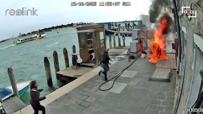 L’episodio poteva finire molto peggio, se non fosse stato per il pronto intervento dei gestori della stazione di rifornimento, un uomo e una donna, che hanno preso immediatamente gli estintori e hanno spento l’incendio prima che si espandesse, aiutando anche la senza fissa dimora e facendo segno alle barche di non avvicinarsi.