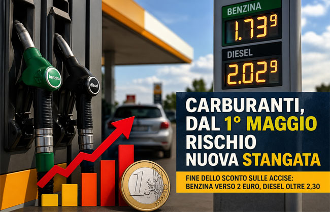 La misura ha consentito fino a oggi un risparmio di circa 24 centesimi al litro. Senza questo taglio, però, i prezzi potrebbero salire rapidamente: la benzina rischia di avvicinarsi ai 2 euro al litro, mentre il diesel potrebbe superare quota 2,30 euro.